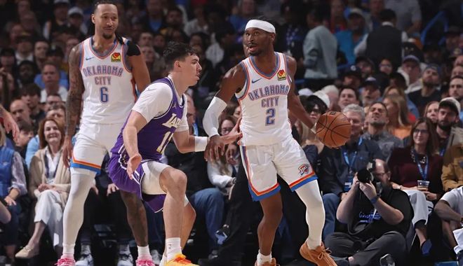 亚历山大30+5+9比肩威少,卡鲁索锁东契奇手刃旧主,雷霆狂胜湖人